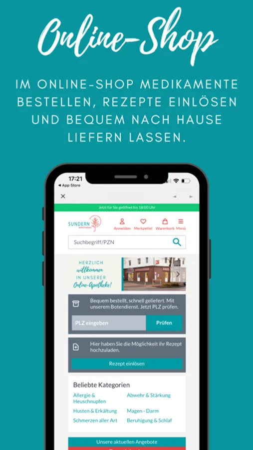 Apotheken-Gesundheits-App mit allen relevanten Serviceangeboten der Sundern Apotheke.