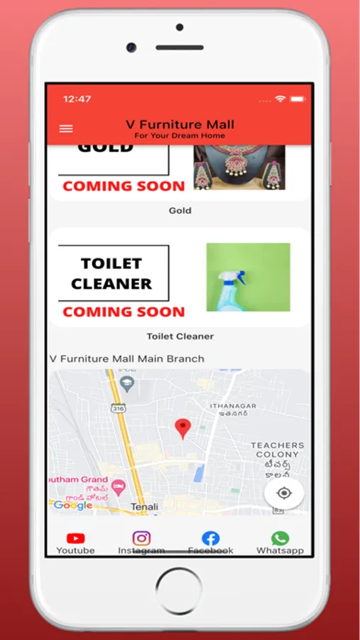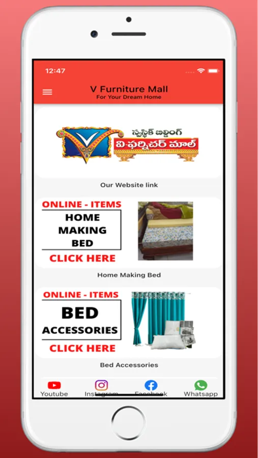 By downloading our v furniture mall app on your iPhone or iPad you can browse our website, YouTube channel and Facebook Page.