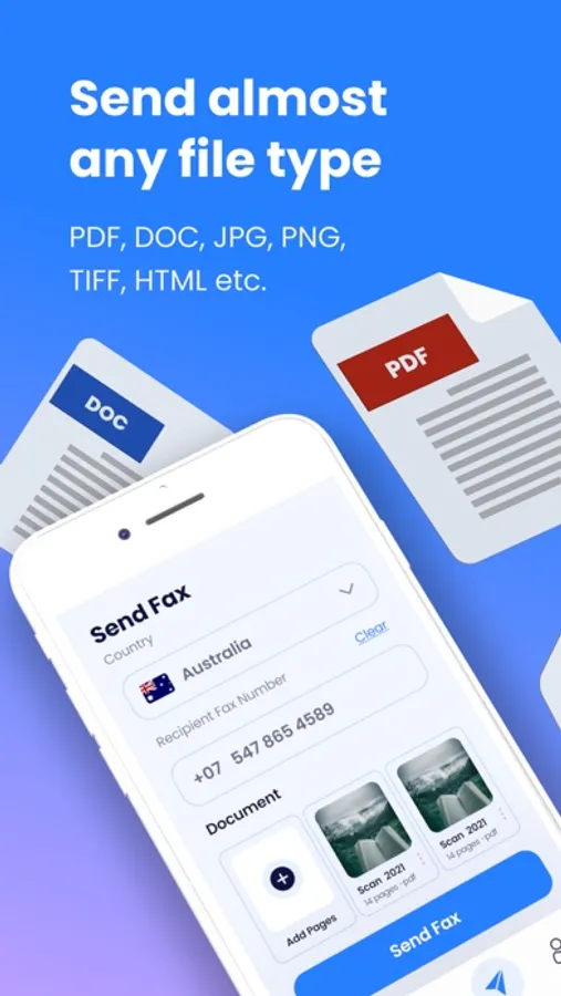 - Send just about any file type as a fax (PDF, DOC, JPG, PNG & TIFF, HTML);