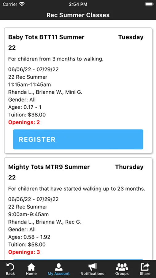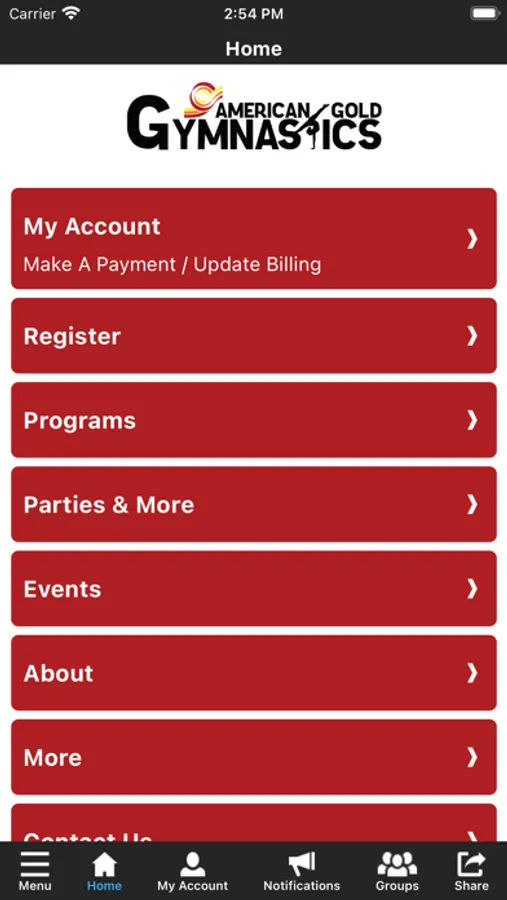 The American Gold Gymnastics app allows you to manage your account with ease, register for classes, parties, and special events. You'll also receive important notifications about class changes, closings, registration openings, special announcements, and upcoming events.