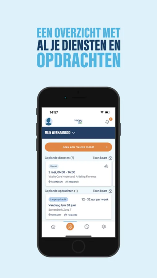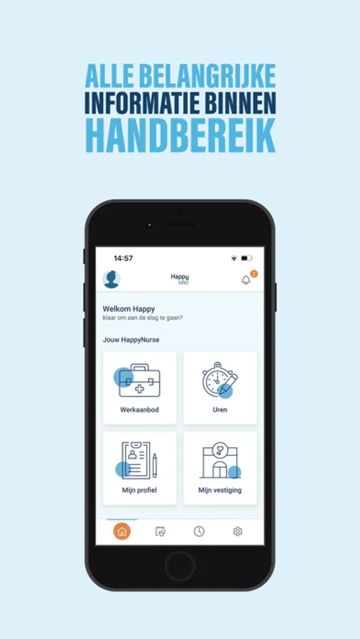 HappyOne is de alles in één app voor zorgprofessionals die werkzaam zijn voor HappyNurse en HappyMedStudent. Schrijf je in op jouw favoriete diensten en dien je uren eenvoudig in. Jij bent de baas over jouw eigen agenda en HappyOne is de tool die jou hierbij ondersteunt. Makkelijk en snel, zodat jij je bezig kunt houden met waar je écht goed in bent, namelijk zorgen.
