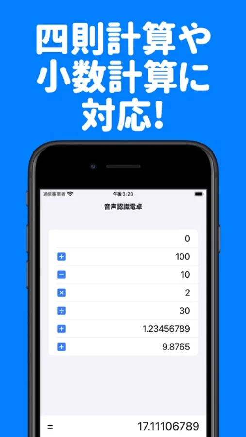 音声認識を使って、声で計算を入力できる電卓です。