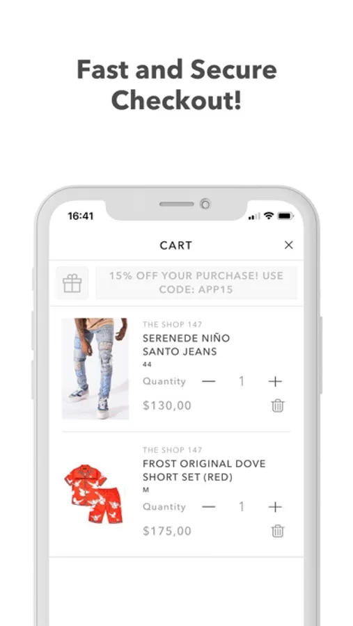 Improve your shopping experience with The Shop 147 App. Be the first to see our latest collections, enjoy in app only discounts, make a wishlist of your favorite items and keep all of your orders and shipping information in one place.