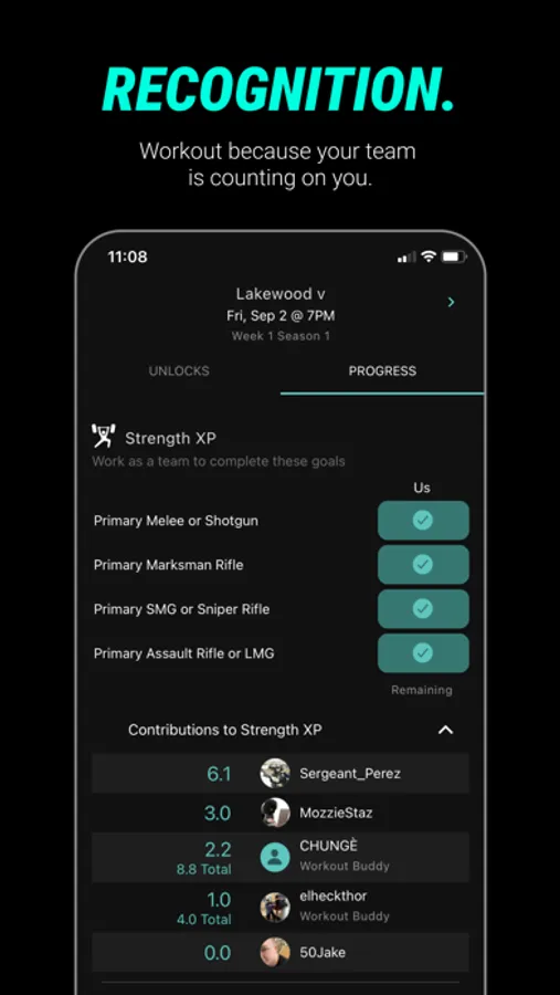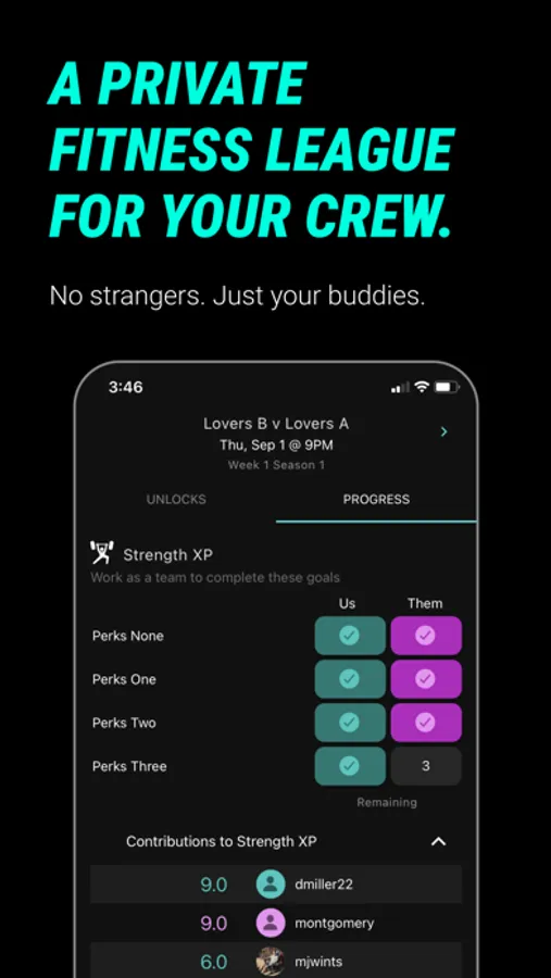 Once you join or start an XP league you will compete against others in weekly fitness goals. Completing goals unlocks rewards in your weekly match up!