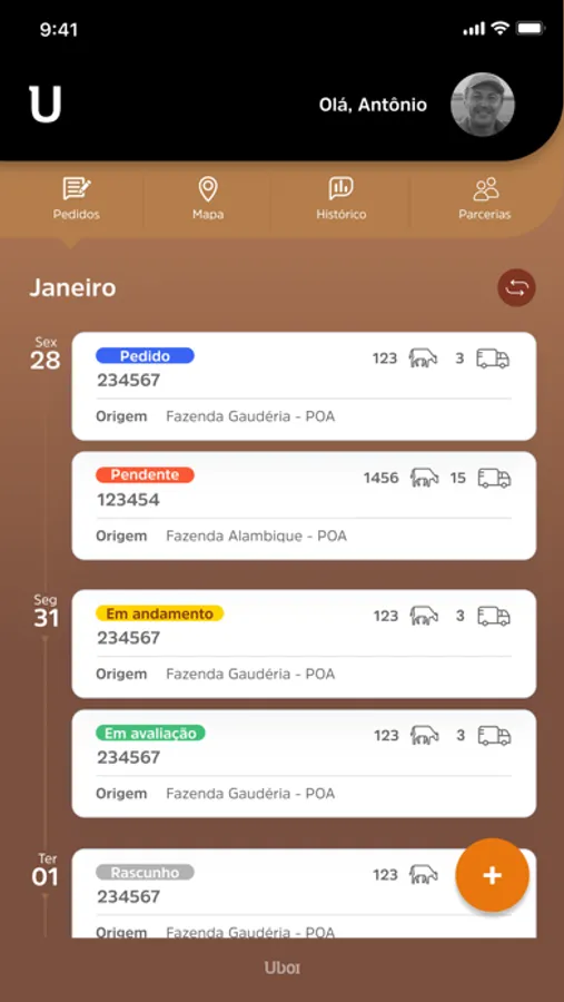 Novo aplicativo do Uboi. A plataforma perfeita para você transportar o seu gado vivo. Com o o novo app Uboi você pode fazer pedidos de transporte para o seus animais, acompanhar o pedido do início ao fim, acompanhar em tempo real.