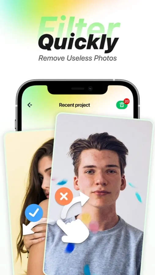 -Swipe and organize N photos, decide whether to keep or not to take photos in 1 second