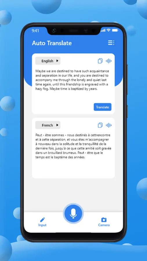 Text Translation: You can get the translated text immediately by inputting it through the mobile phone keyboard, or you can choose the microphone output.