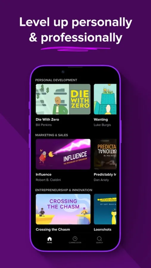 Develop and learn new skills with topics, like: Communication, Marketing & Sales, Entrepreneurship, Innovation, Career, Management, Leadership, Mindfulness, Parenting, Health & Wellness, Economics, Money Management, Creativity, Psychology and more!