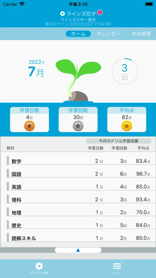・お子様の学習状況、取組姿勢などをリアルタイムで確認できます。保護者アプリでは、学習状況をプッシュ通知できるように設定も可能です。