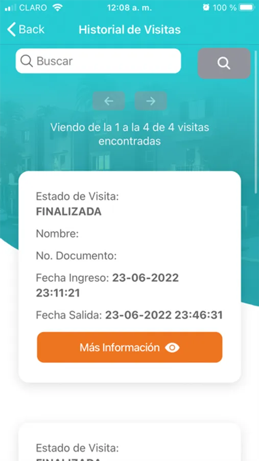 - Historial de Visitas: Revisa el historial de visitas desde tu celular con fotografías, fechas y hora de ingreso / salida.
