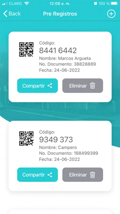 Permite a los residentes generar códigos QR de acceso desde su Celular para autorizar el ingreso de visitas.