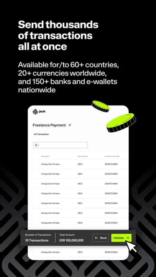 - Send thousands of transactions to over 150 banks & e-wallets in Indonesia