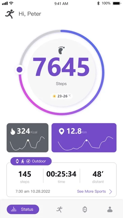 Sync your steps,calories,mileage,heart rate,sleep and your exercise records recorded by your watch. The newly designed UI can display the data more intuitively.