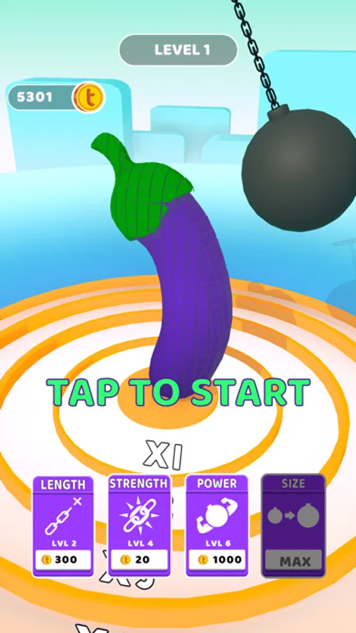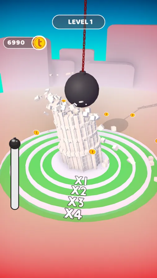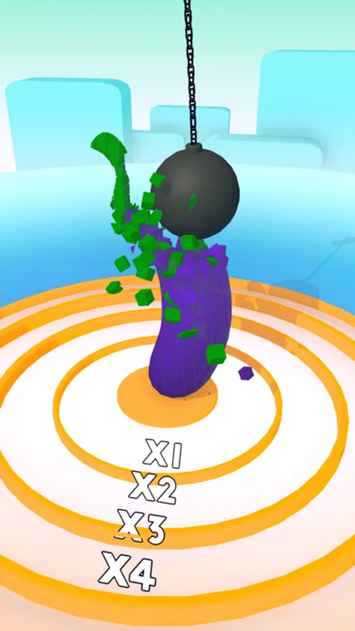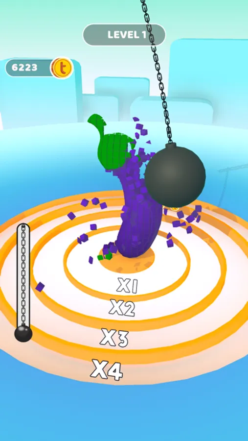 Wrecking the Pisa Tower or an eggplant, why not? Grab your wrecking ball and do it! Your chain needs some attention. You must strengthen it for a longer action. Spend your coins wisely and wreck them all!