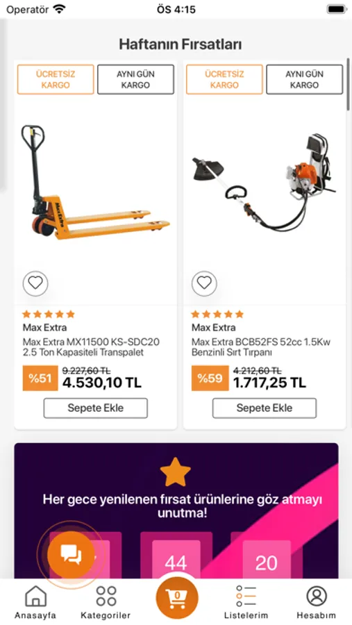 Uygulamamıza özel aydınlatma, elektrik, kablo, makine ve el aletleri, ısıtma, soğutma ve havalandırma, garaj ve kaldırma ekipmanları gibi kategorilerin fırsatlarını kaçırma!