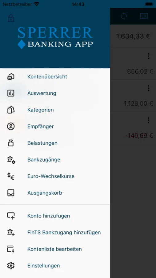 • Multibanking: in der Sperrer-App verwalten Sie neben Ihren Sperrer-Konten auch die Konten bei anderen Banken.