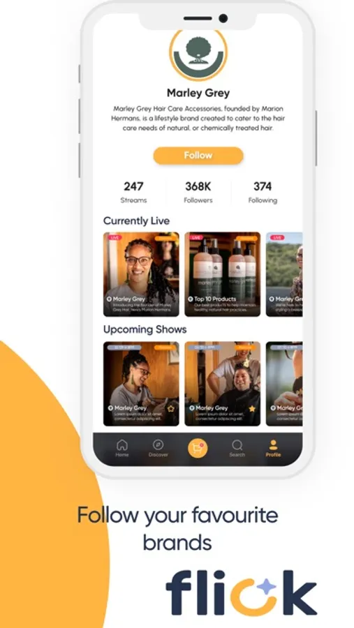 Flick Live is the first live shopping app in Africa. You can follow your favourite brands, watch them live and securely check out without ever leaving the app. Get notified when there are big sales or scroll through and discover new brands.