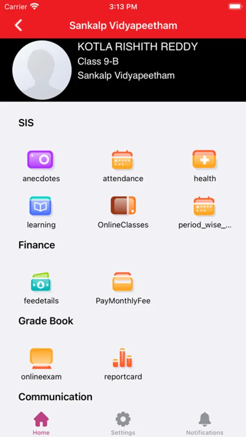 Sankalp Vidyapeetham provides communication app for parents using which they can download school announcements, Class assignments, Events.