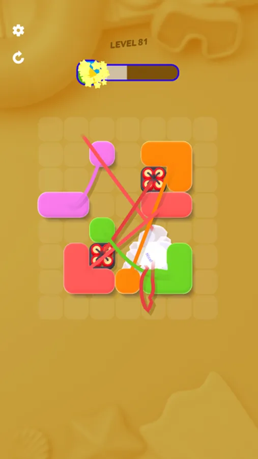 • Feeling mentally blocked? This original and addictive brainteaser game is a great way to improve your IQ and give your mind a quick but powerful workout. Pairs of blocks connected by a stretchy cord must be brought together to clear the board and complete the puzzle. Pull this one up, push that one to the side, and keep shuffling till you’ve completed all the pairs.