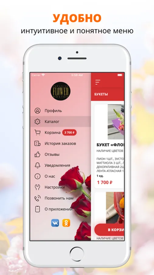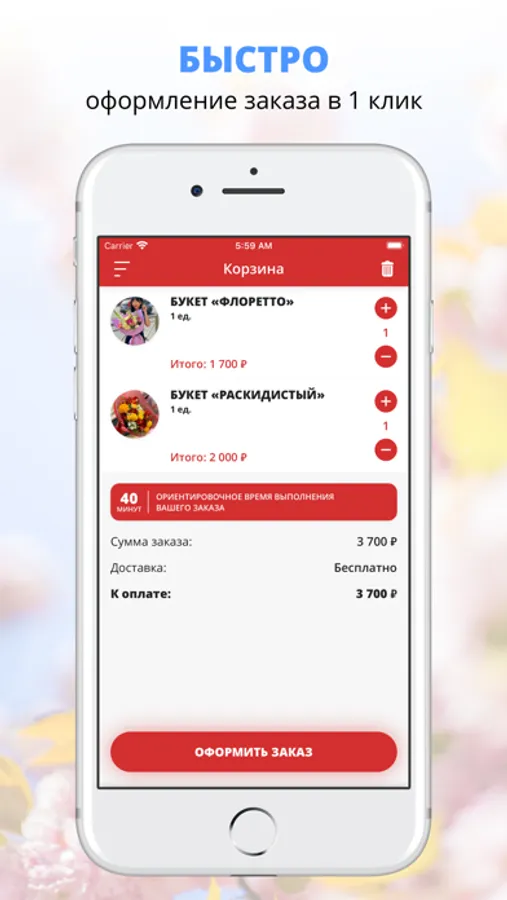 Скачивайте наше приложение, оформляйте заказ и наслаждайтесь красивыми цветами, где бы Вы ни были!