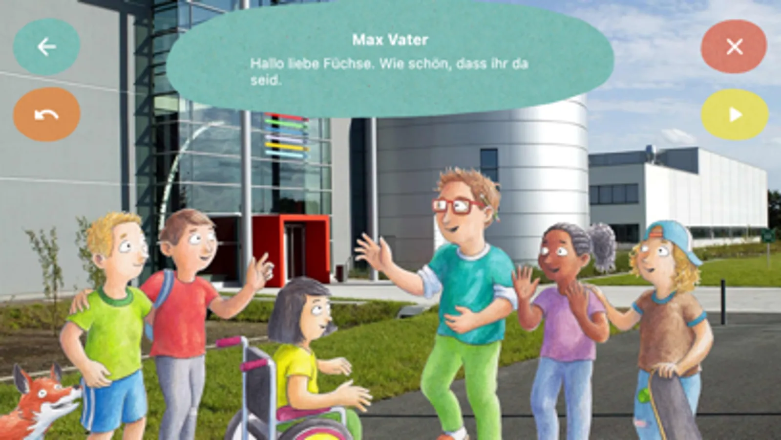jeweiligen Erklärfilme können über Buttons in der App angeschaut werden. Der Vater von Max lädt die Kinder