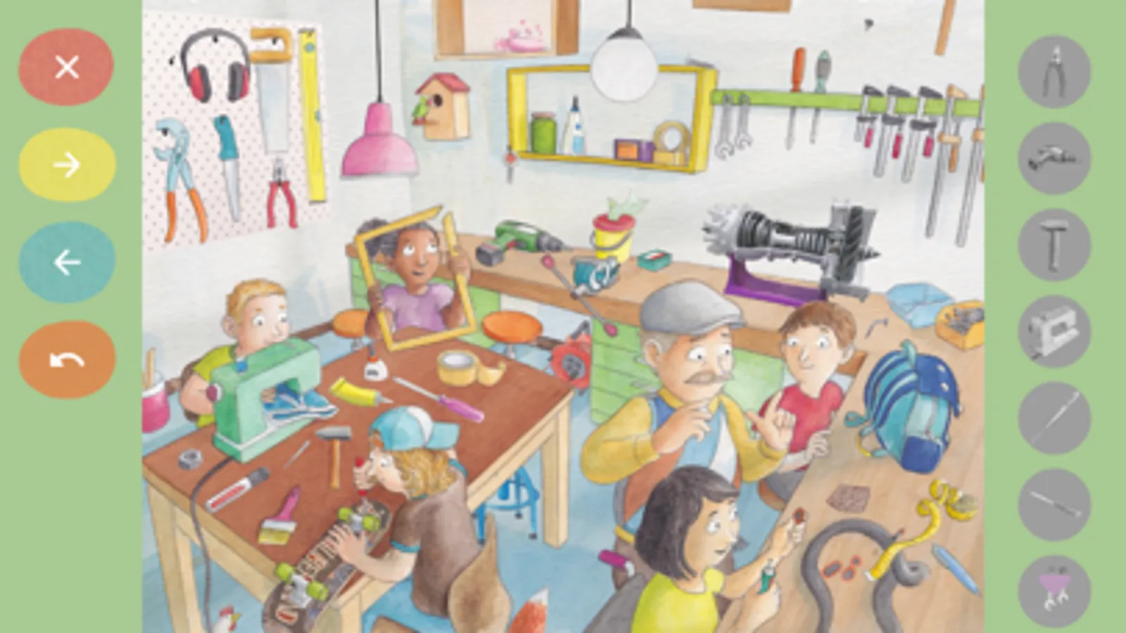 Die App ist eine Ergänzung zum Bilderbuch ,Alles kaputt?! Eine Geschichte über das Reparieren‘, das im