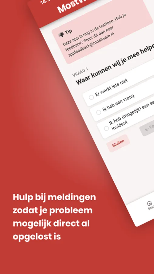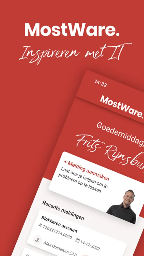 De gebruiksvriendelijke app van MostWare voor klanten. Maak eenvoudig meldingen aan bij MostWare om jouw probleem op te lossen of je vraag te laten beantwoorden. Blijf op de hoogte van de status van jouw meldingen en krijg notificaties bij onderhoud of storingen.
