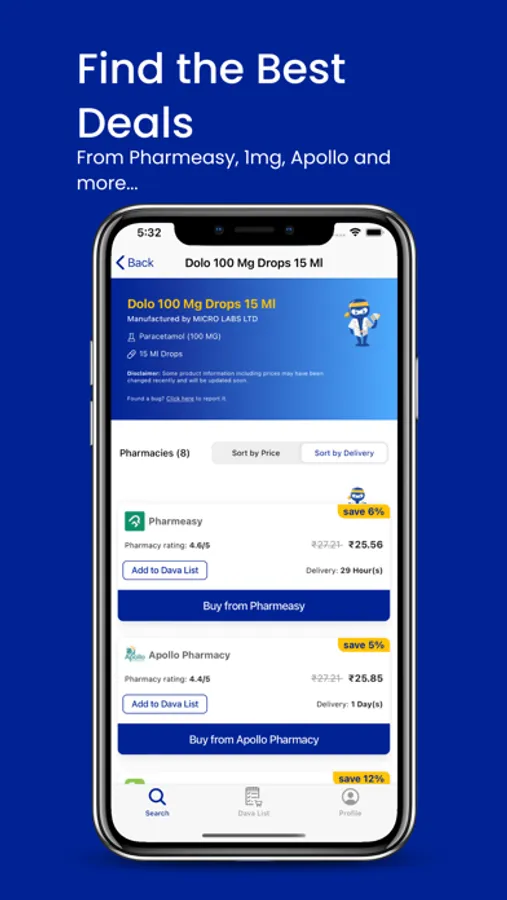 Buying medicines? Compare prices, medicine availability, and delivery times from India's top pharmacies on DavaNinja - One App, Many Pharmacies. DavaNinja is an information platform. You can compare medicine deals & information, and buy directly from your pharmacy.