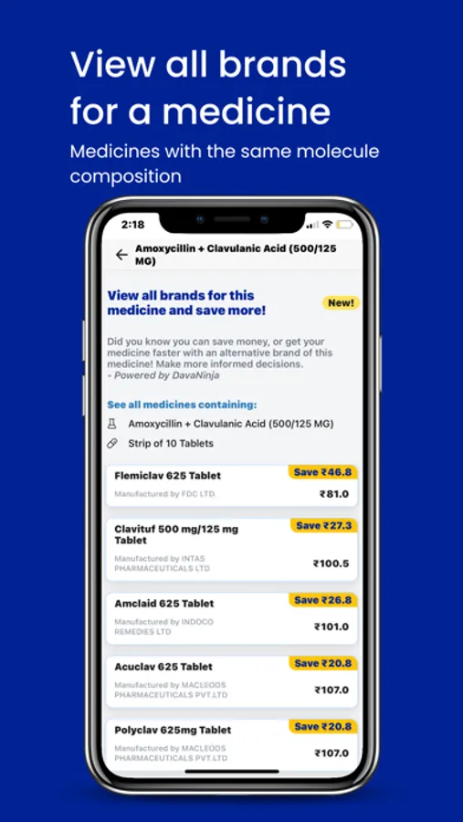 With our new substitutes & alternatives feature you can find multiple brands of the same medicine, at a much lower cost. The DavaNinja medicine app helps you review alternatives and make an informed decision. Always check with your doctor before substituting your medicine.