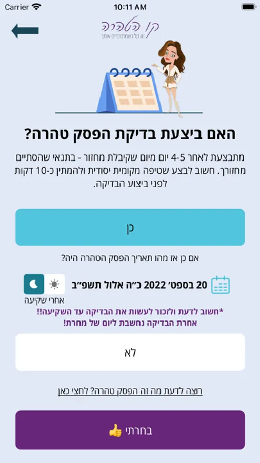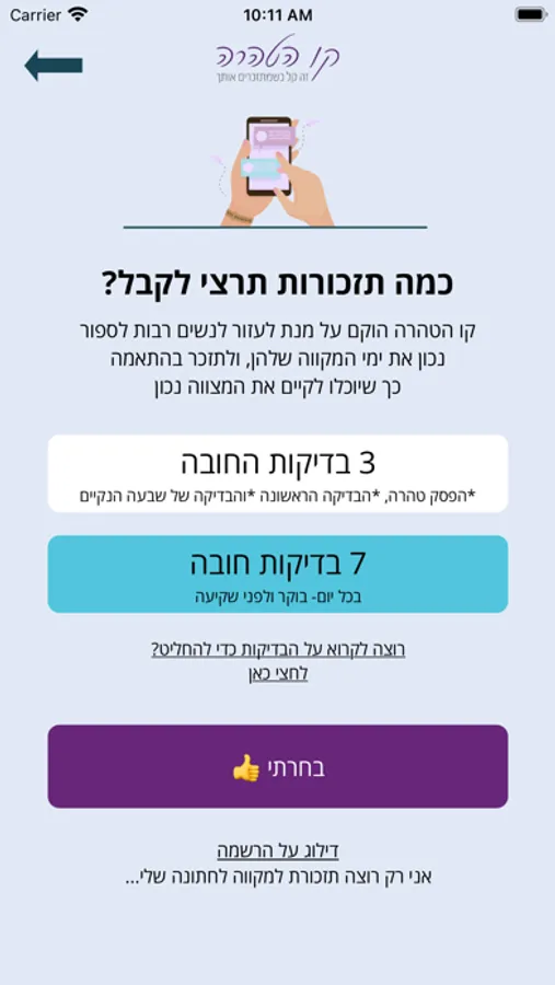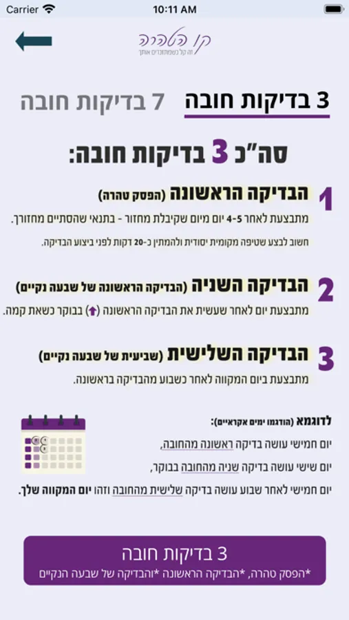 קו הטהרה הוקם על מנת לעזור לנשים רבות לספור נכון את ימי המקווה שלהן, ולתזכר בהתאמה כך שיוכלו לקיים את המצווה נכון