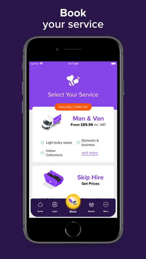 Use the brand new Clearabee app that has been designed to make getting rid of rubbish as quick and as convenient as possible. Each step of your order has been carefully considered, so that booking a Clearabee waste removal will only take a couple of short minutes. Once booked, services such as our ‘Man & Van’ collection can be at your door to remove waste on the very same day of your enquiry. Creating an account will allow you to track pending and past rubbish collection jobs. It will also make checking out even quicker with efficient personal and payment details management.