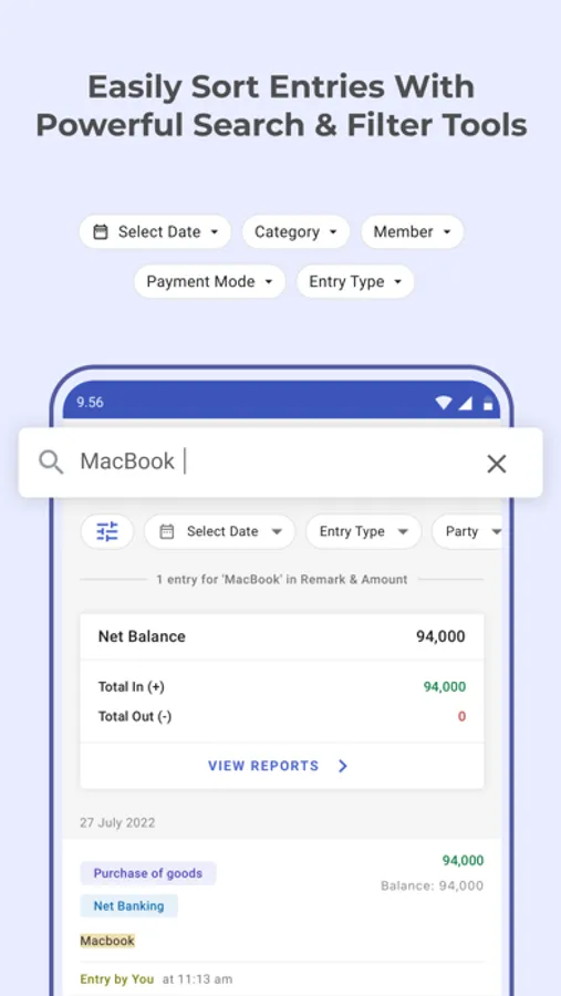 Trust CashBook to calculate your cash-in-hand, net balance, and business ledgers, and track your online balance easily.