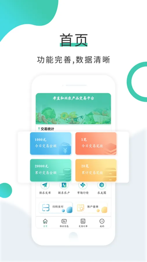 孝直和兴农产品交易平台是专门为农户、商户提供农产品买卖、农产品收购、在线支付等综合性农产品交易平台。通过农行借记卡进行资金结算。通过农业银行支付接口与用户之间进行资金划拨及资金结算,实现市场无现金化交易,减少用户损失,规避交易风险,确保资金安全。