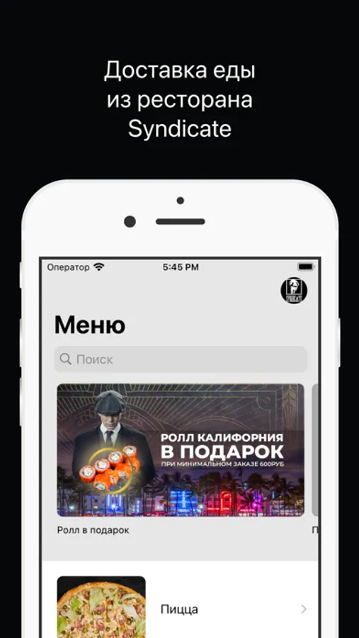 Как сделать заказ в приложении “Syndicate”: выберите понравившиеся позиции из меню, добавьте их в корзину и перейдите на экран оформления заказа (по нажатию на иконку корзины).