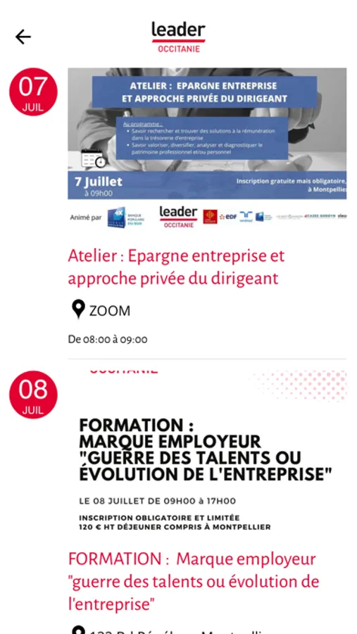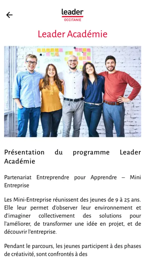 Le but de cette application est de permettre aux adhérents Leader Occitanie de consulter les actualités du réseau.