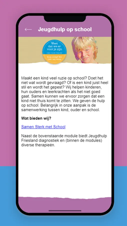 Met deze app helpen wij gemeentelijke verwijzers, (huis)artsen en andere wettelijke verwijzers bij het vinden van de best passende zorg voor kinderen, jongeren en hun gezinnen. En kunnen we attenderen op interessante bijeenkomsten en trainingen.