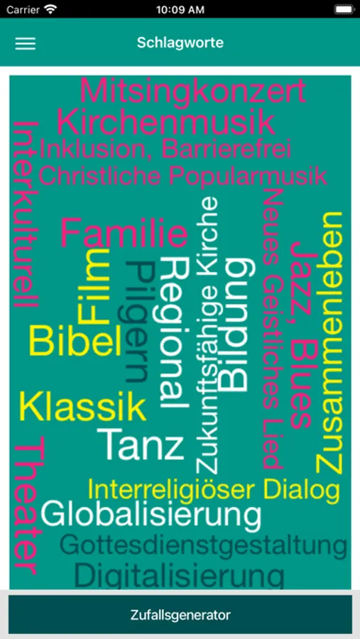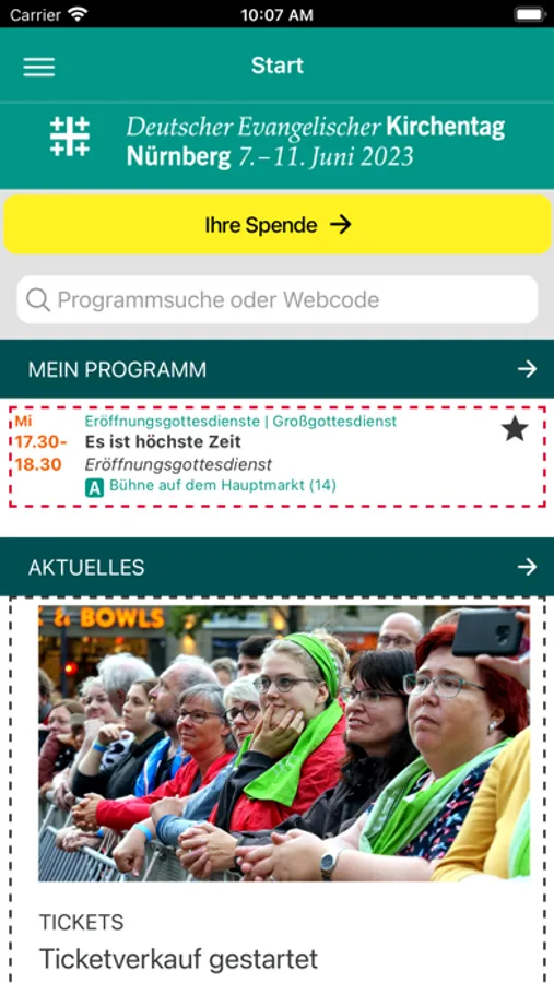 Mit der Kirchentags-App holen Sie sich das Programm des Nürnberger Kirchentages direkt auf Ihr Mobilgerät. Mit der App sind Sie immer auf dem aktuellen Stand, haben einen vollständigen Überblick über alle Veranstaltungen und navigieren dank einer einfachen Bedienung sicher durch den Kirchentag.