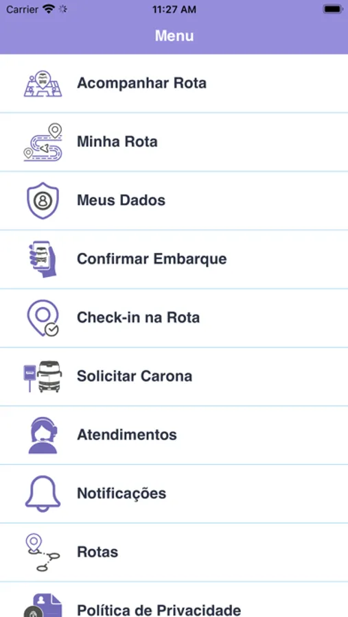 O app Kopereck permite ao passageiro consultar em tempo real o deslocamento dos veículos em rota, solicitar carona em rotas diversas, confirmar embarque, realizar check in no veículo, solicitar atendimentos, editar suas informações, etc...
