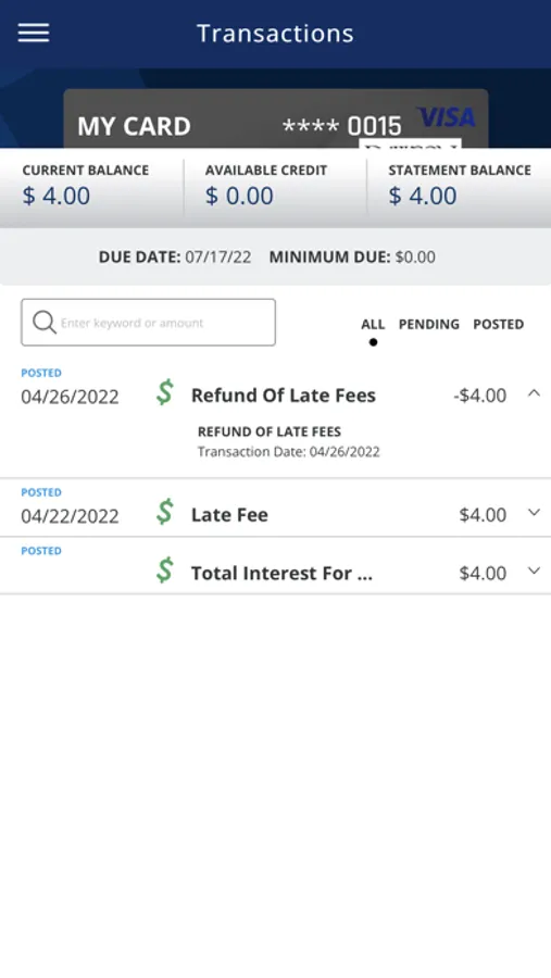 • View recent and pending transactions.