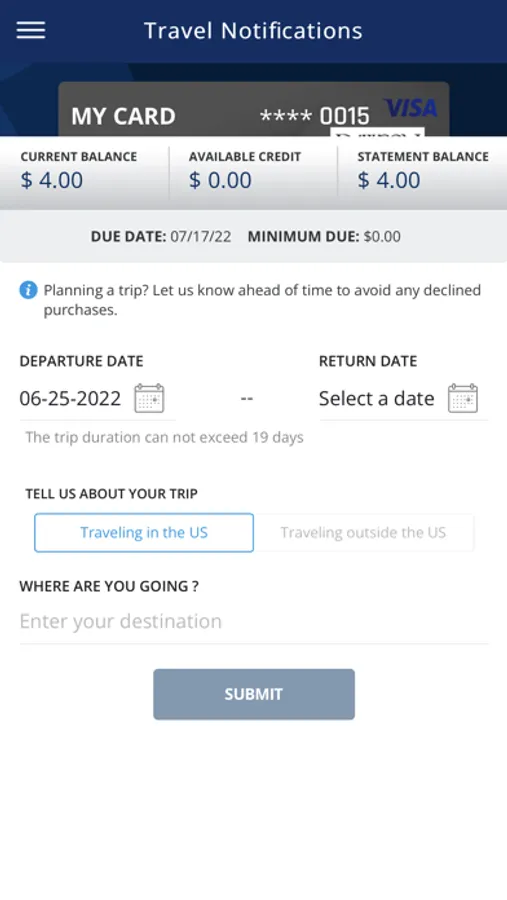 • Set travel notifications.