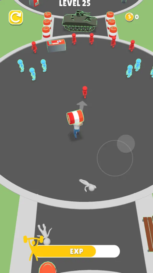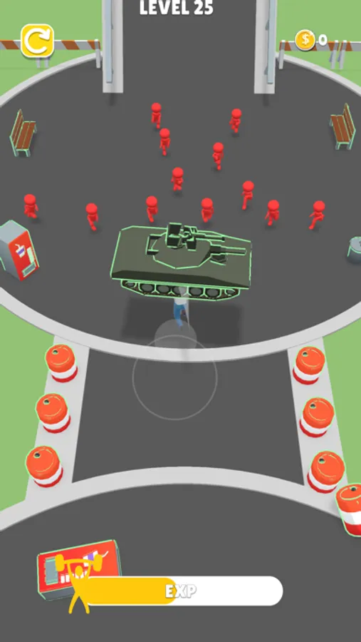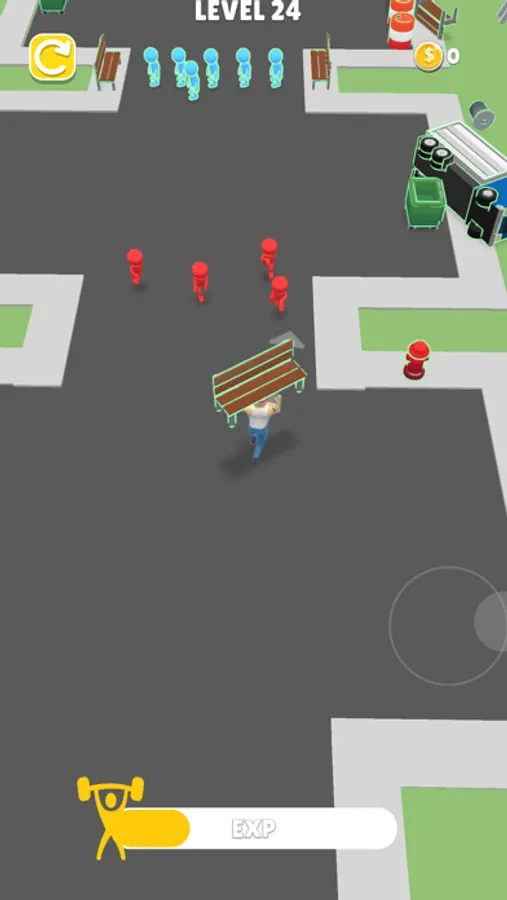 Survive by throwing objects around you at enemies. Control character with joystick.