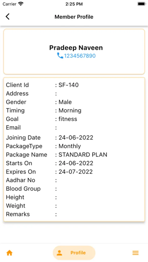 Spartan Fitness Club App includes Client's Current Membership, Payment Details, Attendance Report and their profile.