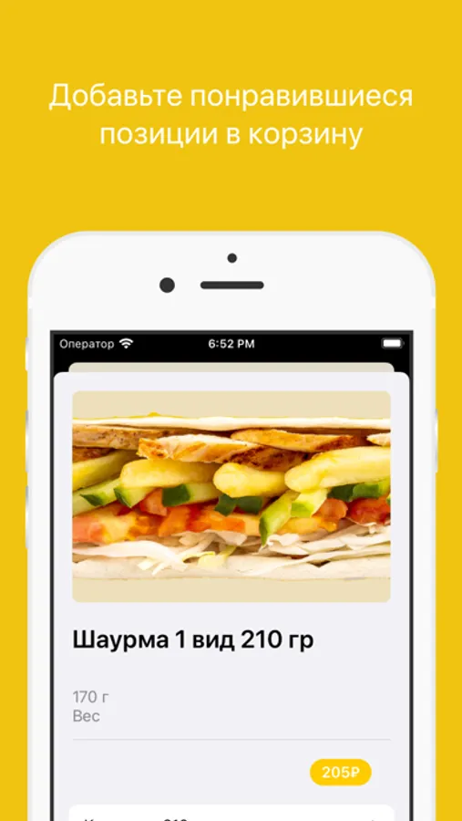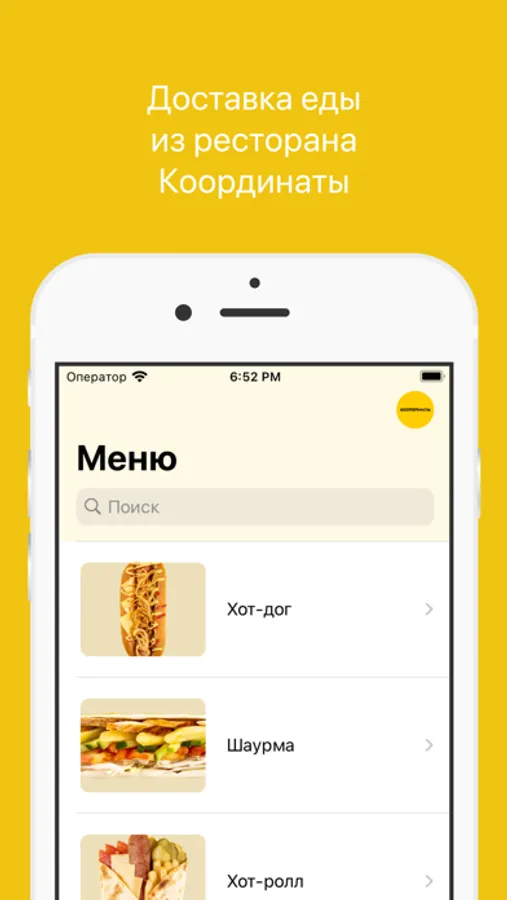Как сделать заказ в приложении “Координаты”: выберите понравившиеся позиции из меню, добавьте их в корзину и перейдите на экран оформления заказа (по нажатию на иконку корзины).