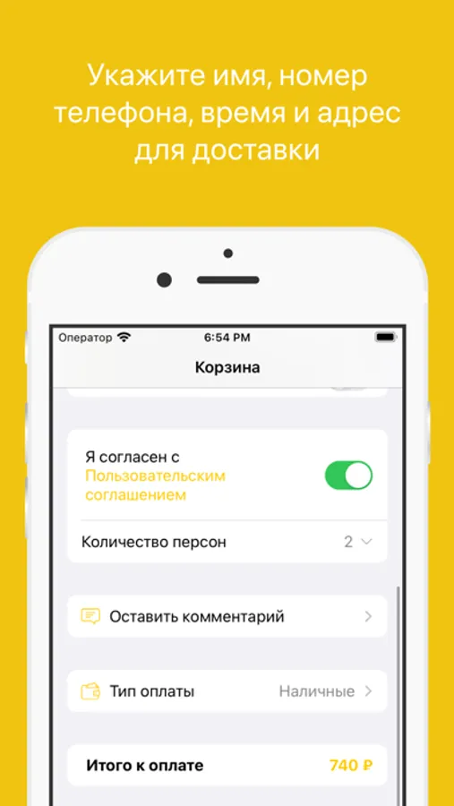 Укажите время, когда хотите прийти за своим заказом или выберите доставку с указанием времени и адреса доставки.