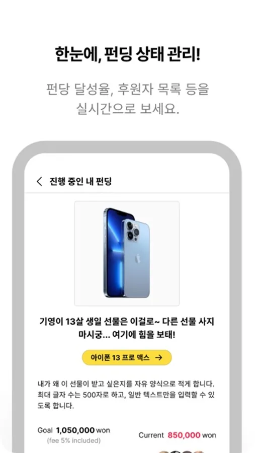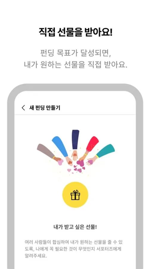 - 원하는 선물을 등록하세요. 친구들과 지인들에게 공유하면 끝.