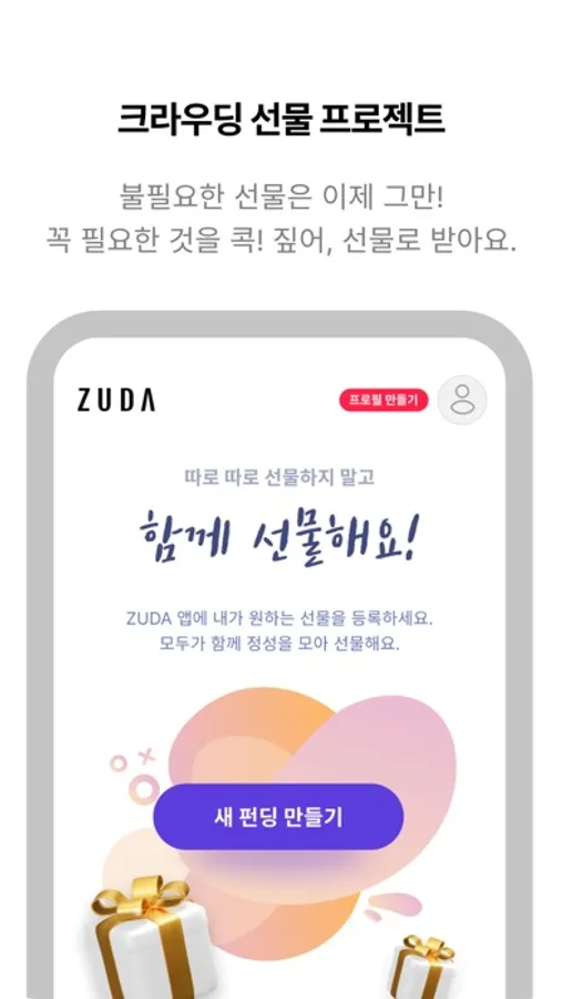 - '주다'는 원하는 선물을 등록하고 친구들과 지인들이 함께 결제하고 모금이 달성 되면 선물이 배송됩니다.