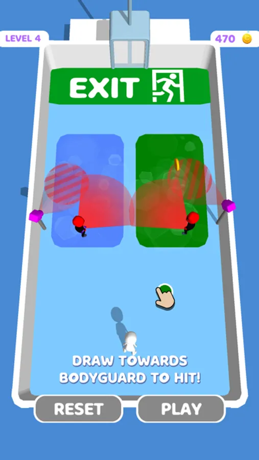 Draw your line to beat bodyguards! Do not get caught! Rescue the hostages! Match with right colors to get camouflaged! Get camouflaged to be invisible! Draw carefully!
