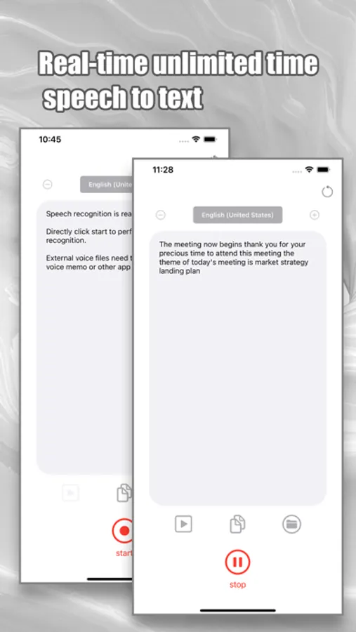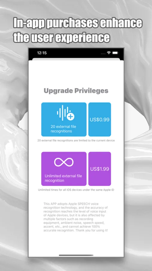 This software is a real-time to convert speech into text APP, it uses Apple's latest speech recognition technology, can recognize up to 63 languages. Support multiple formats of voice files, support for external audio file import. Powerful file management system that caches recognition results. The free version allows unlimited real-time recording recognition and provides free recognition of external audio files 5 times.