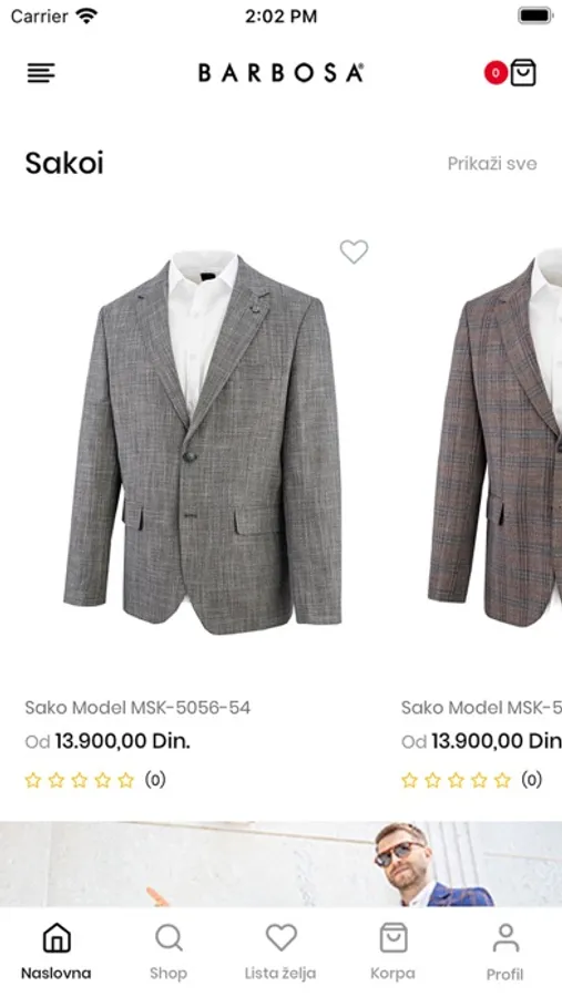 Na našoj aplikaciji možete pronaci aktuelnu kolekciju muške garderobe (sakoi, pantolone, majice, šorcevi, kaputi, džemperi ... ). Posetite i našu web stranicu www.barbosa.rs