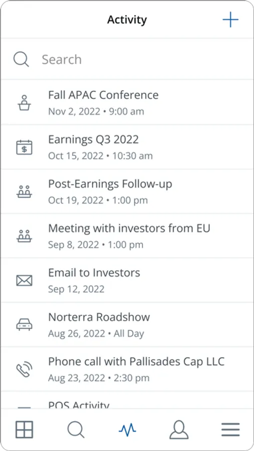 Proactively nurture capital markets relationships with ease, put past investor engagement activities always at your fingertips and never be left unprepared for a meeting on the road again with Q4 Go.